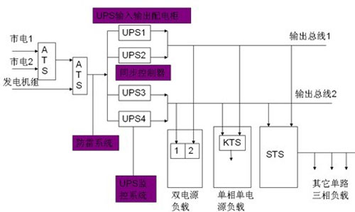 鑒于現(xiàn)在通信網(wǎng)絡(luò)機(jī)房內(nèi)的絕大多數(shù)IT設(shè)備,比如服務(wù)器、路由器、交換機(jī)、光端機(jī)、網(wǎng)關(guān)、磁盤陣列機(jī)和通信設(shè)備等,所允許的瞬間供電中斷時(shí)間僅為0.01-0.02秒左右。這就意味著: 對于關(guān)鍵性的通信負(fù)載系統(tǒng)而言,在運(yùn)行中如果出現(xiàn)0.02秒以上“瞬間供電中斷”的故障時(shí),就會造成“網(wǎng)絡(luò)癱瘓”事故發(fā)生。一旦網(wǎng)絡(luò)癱瘓后, 要想讓整個(gè)網(wǎng)絡(luò)重新恢復(fù)正常工作往往需耗時(shí)幾十分鐘--幾小時(shí)。顯而易見,由此會給用戶帶來巨大的經(jīng)濟(jì)損失。基于上述原因,我們必須考慮消除可能出現(xiàn)在UPS輸出供電系統(tǒng)中的”單點(diǎn)瓶頸”故障隱患,確保對這些關(guān)鍵性IT負(fù)載設(shè)備供電的連續(xù)性。