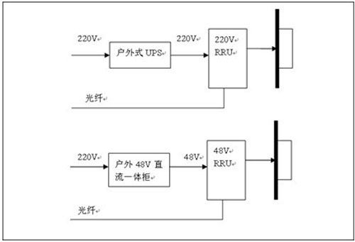 RRU距離機(jī)房超過1500米,BBU就近獨(dú)立接市電,RRU采用獨(dú)立供電模式:采用室外型一體化UPS供電、直流UPS供電(交直流復(fù)合供電模式)、戶外型48V直流供電。