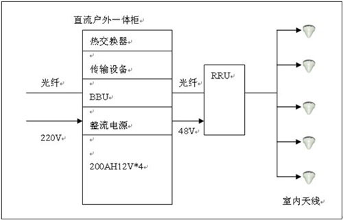 直流拉遠(yuǎn):RRU距離機(jī)房在100米以內(nèi),采用室外型一體化通信電源系統(tǒng)