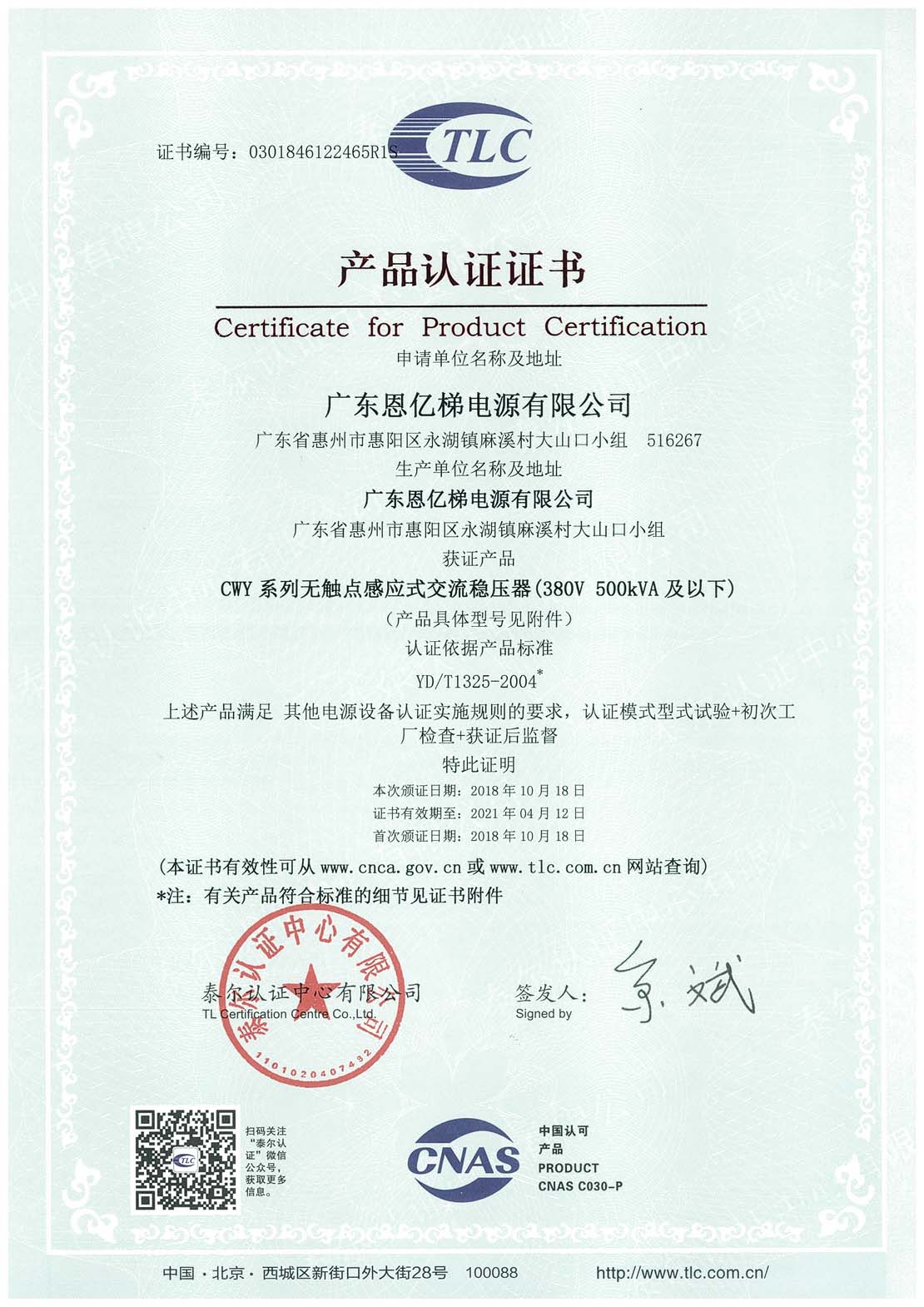 泰爾認證(無觸點感應式交流穩壓器)