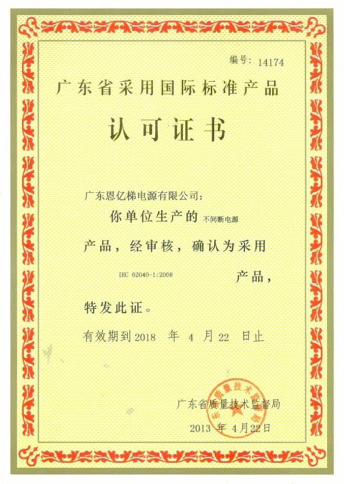廣東省采用國(guó)際標(biāo)準(zhǔn)產(chǎn)品認(rèn)可證書(shū)
