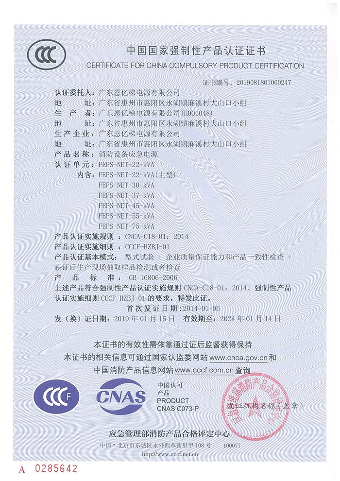 中國國家強制性產(chǎn)品認(rèn)證(消防設(shè)備應(yīng)急電源)